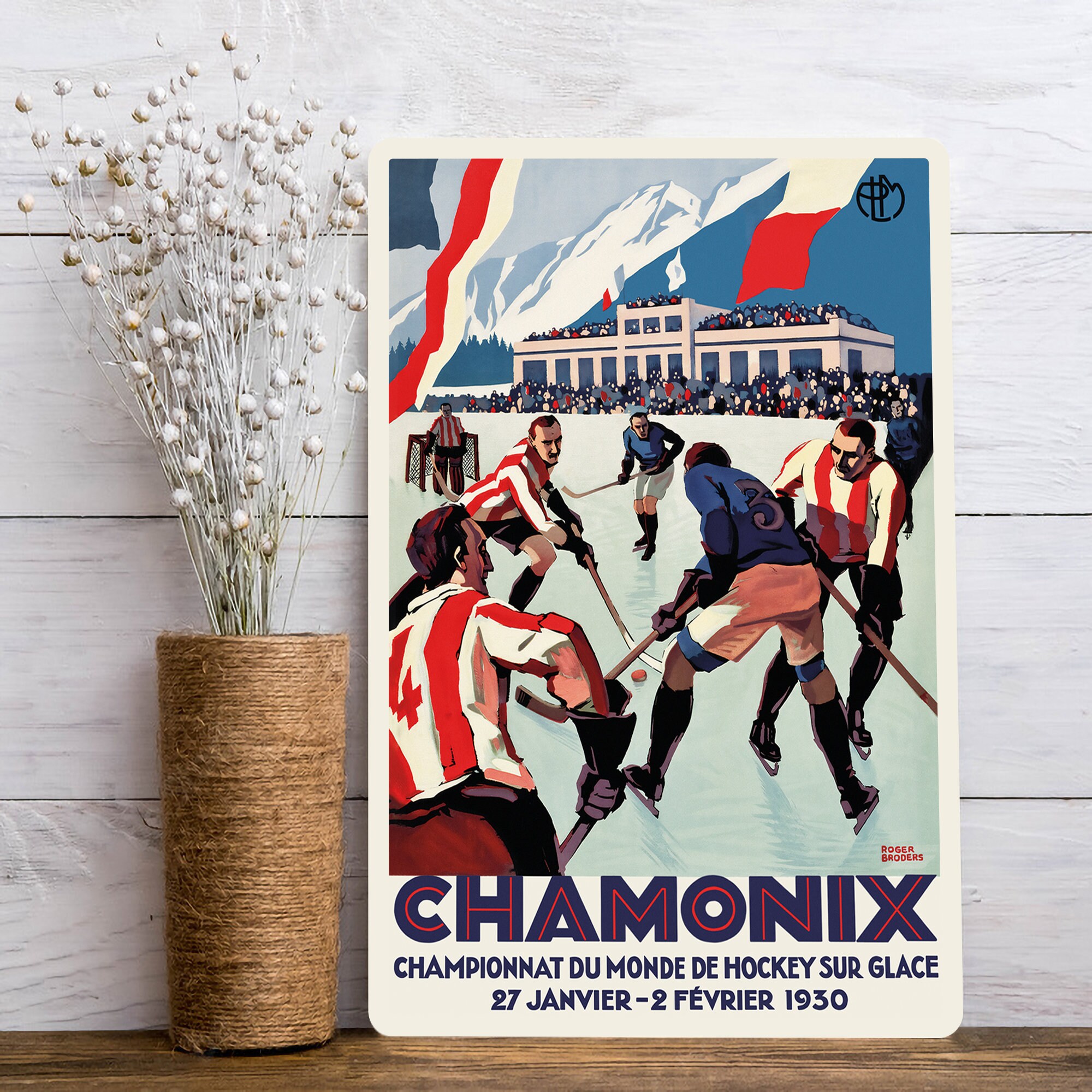 Chamonix Ice Hockey Vintage Travel Poster Print On Metal Plate Etsy