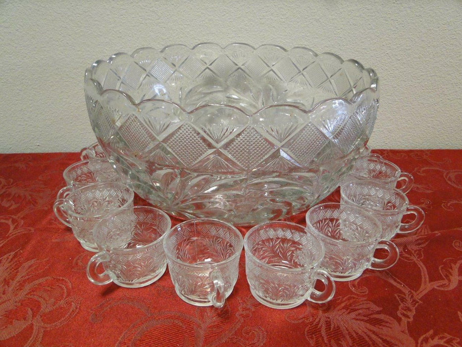 Smith Glass Holiday Clear Flowers Leaves Punch Bowl 10 Cups Set Dishes Encore