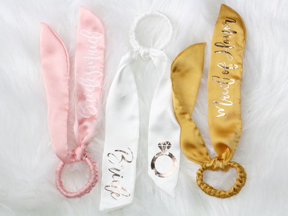 Bridesmaid Hair Ties With Tail Personalized Scrunchie Maid Of Honor Proposal Bridal Shower Favor Etsy