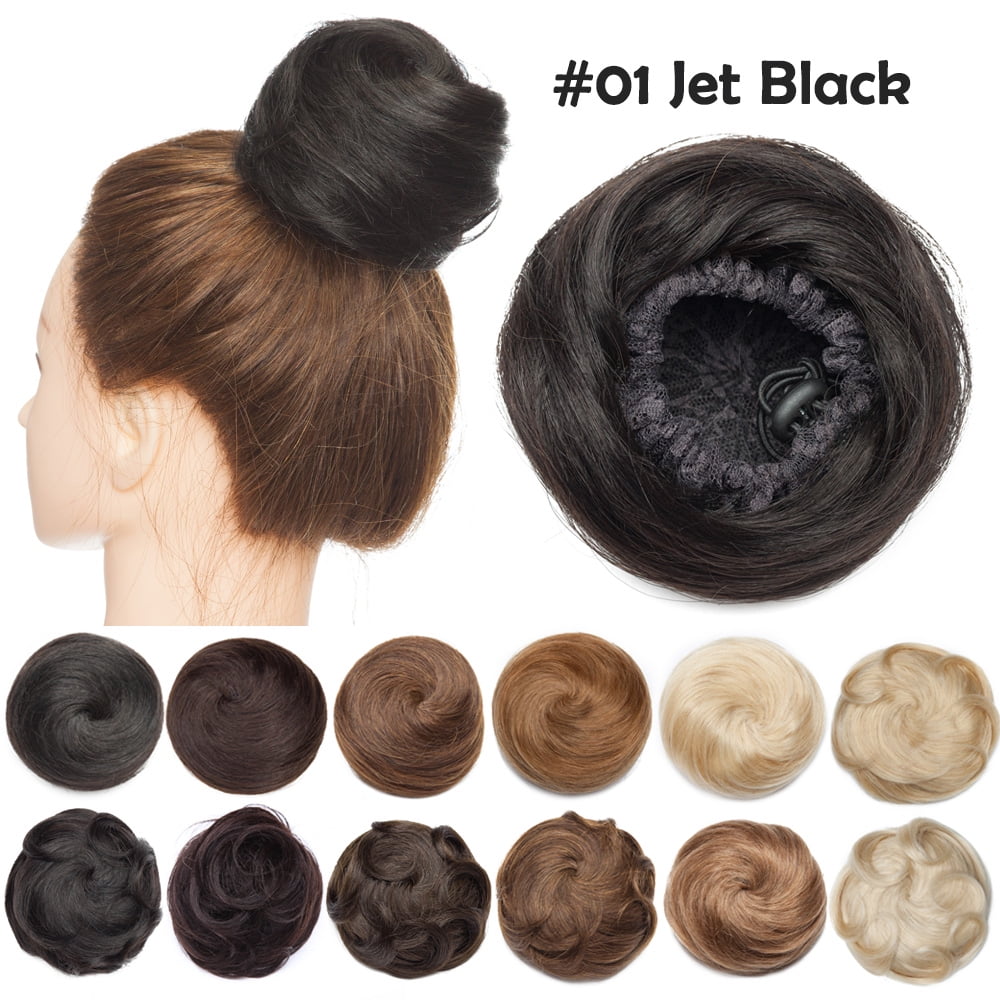 Benehair 100 Human Hair Pieces Extensions Messy Bun Scrunchies Updo Chignons Remy Hair Elastic Band Comb Clip Straight Black Soft Us Walmart Com